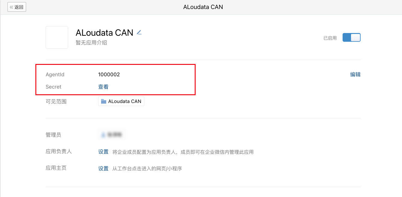 Agent ID:企业ID