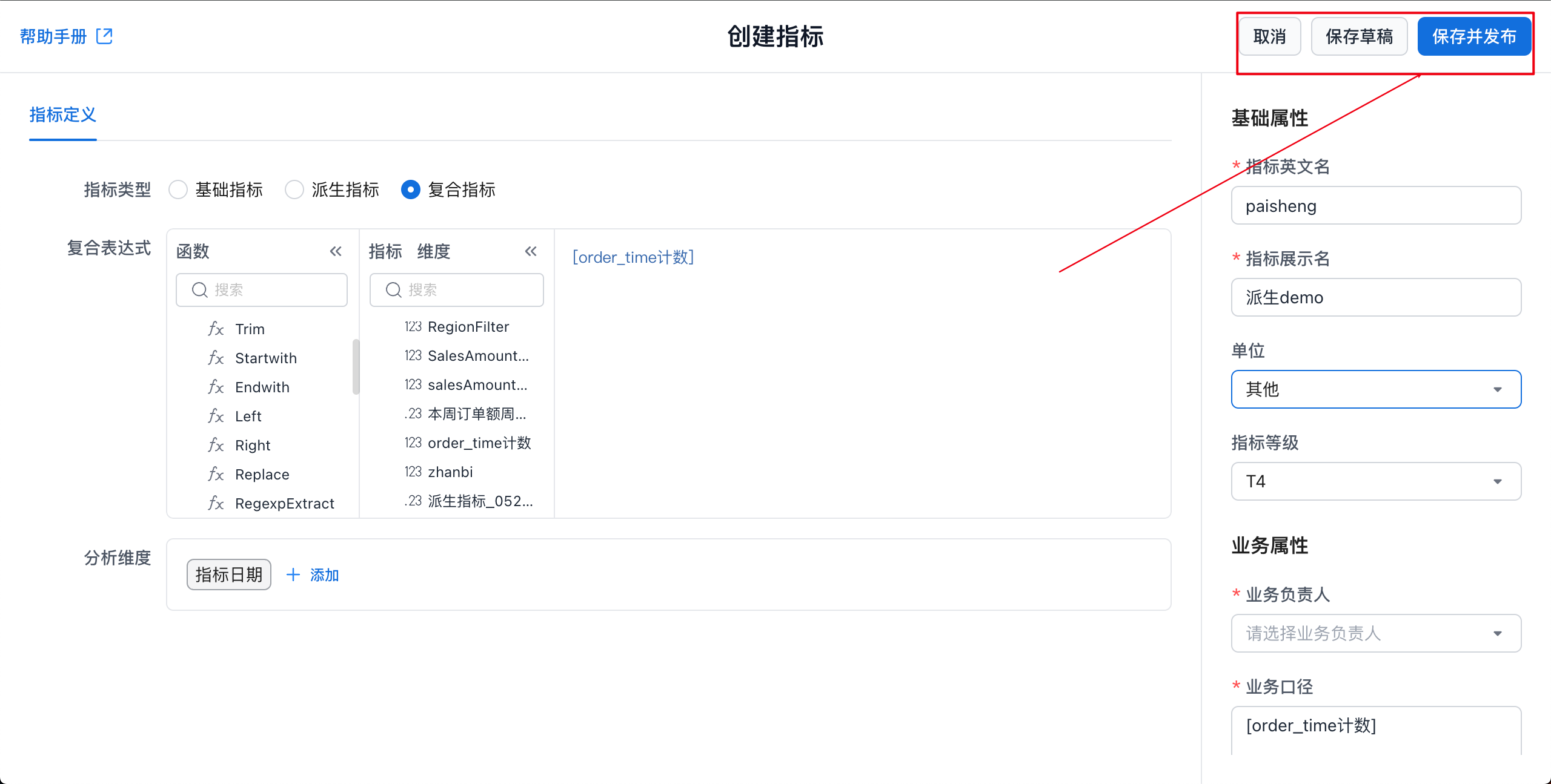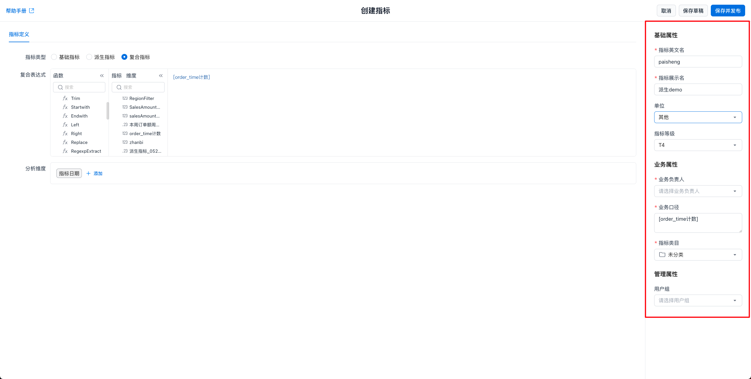 | 业务负责人 | 指标的业务负责人,可以由管理员关闭该属性 |