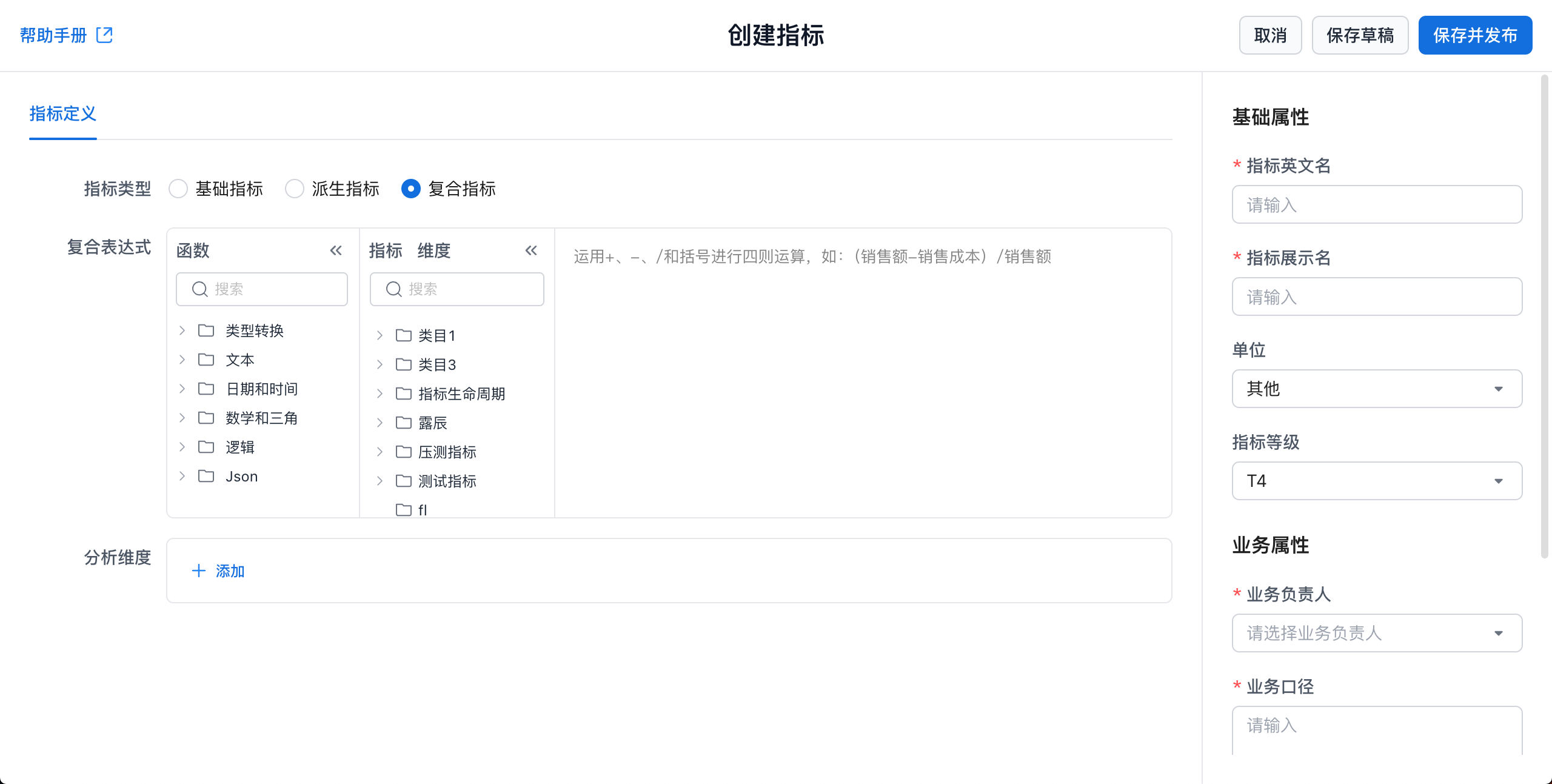 | 指标类目 | 指标的类目,系统提供未分类类目 |