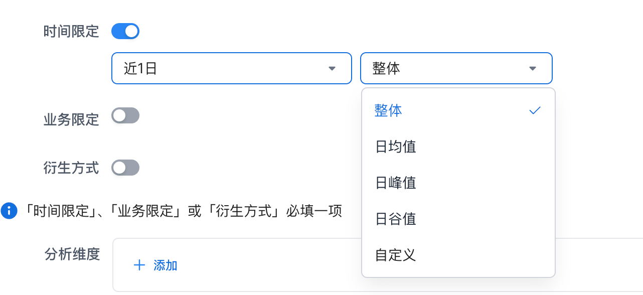 选择该基础指标可以用来分析的维度,可以用于指标的多维分组或筛选。