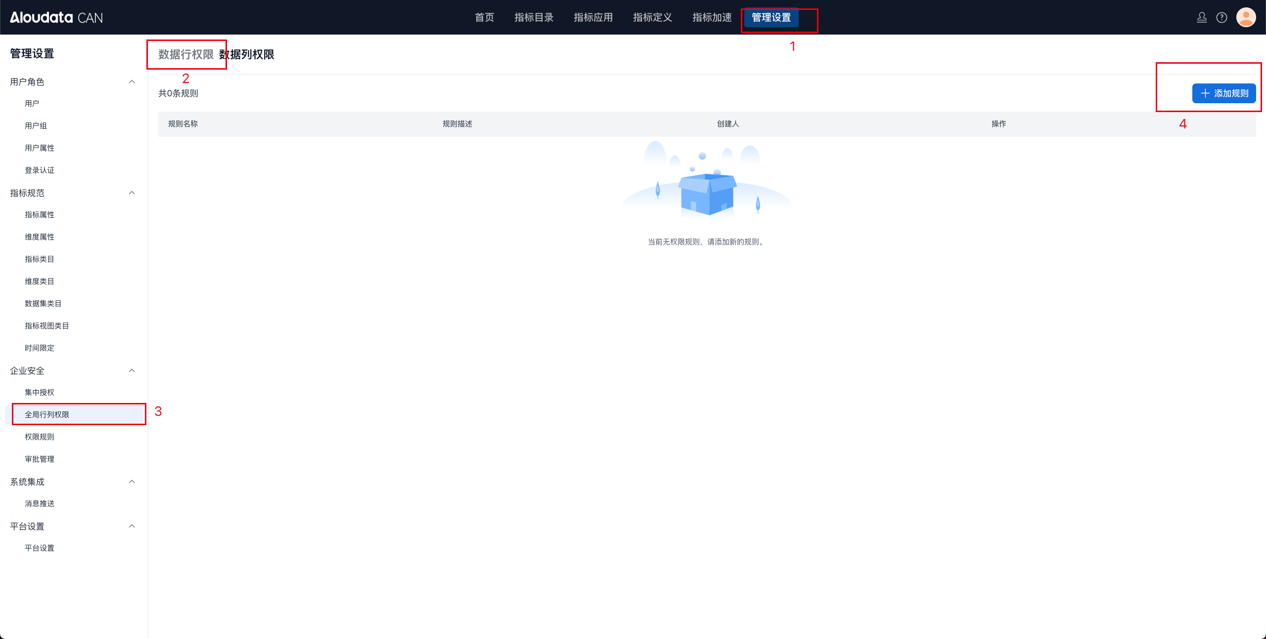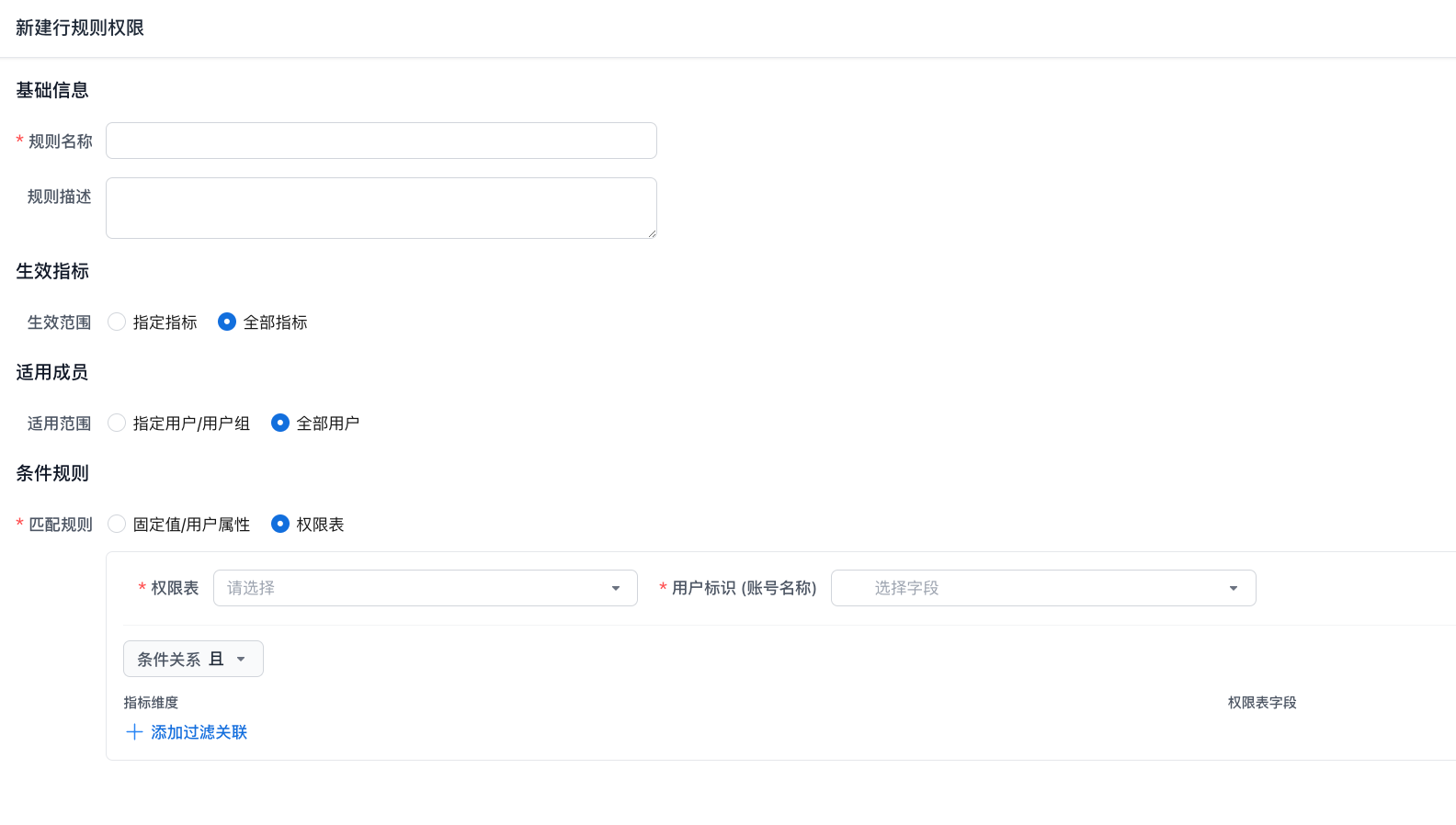 全部指标:权限规则作用于全部指标