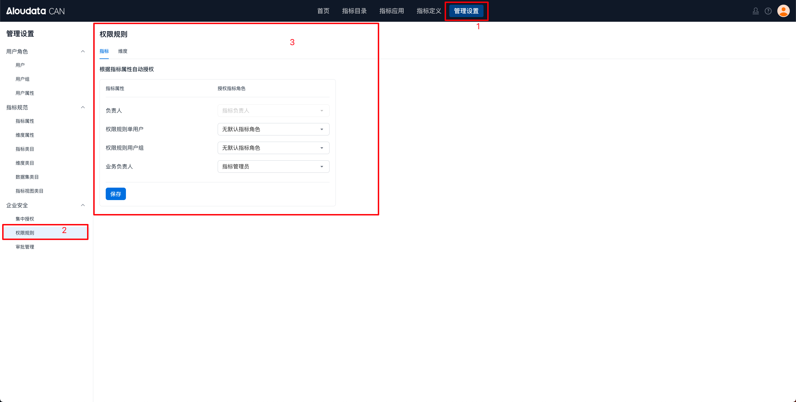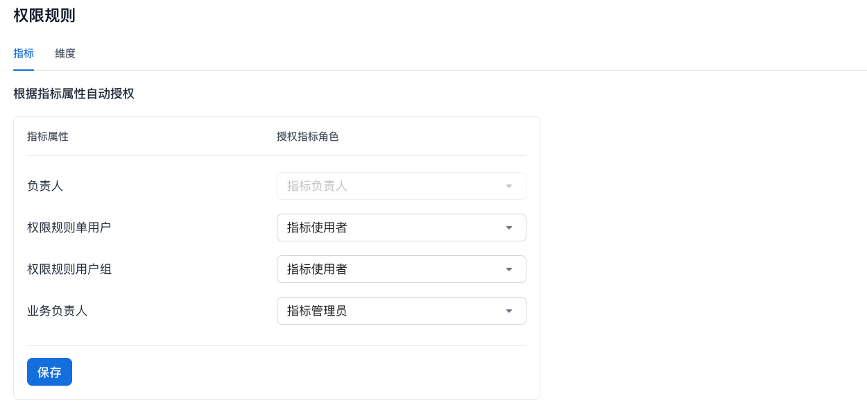 指标权限规则与维度权限规则操作步骤相仿,下方只做指标规则权限的介绍。