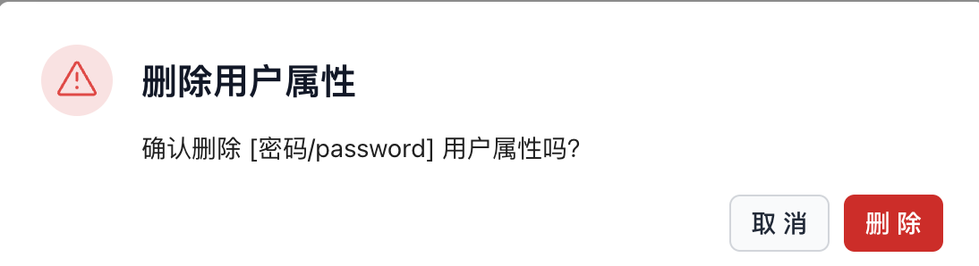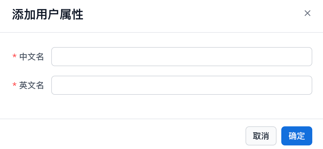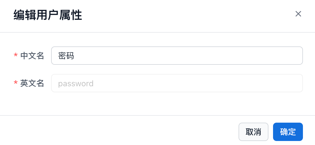 - 在编辑属性弹窗中,按需修改属性内容。目前只支持调整用户属性的中文名。