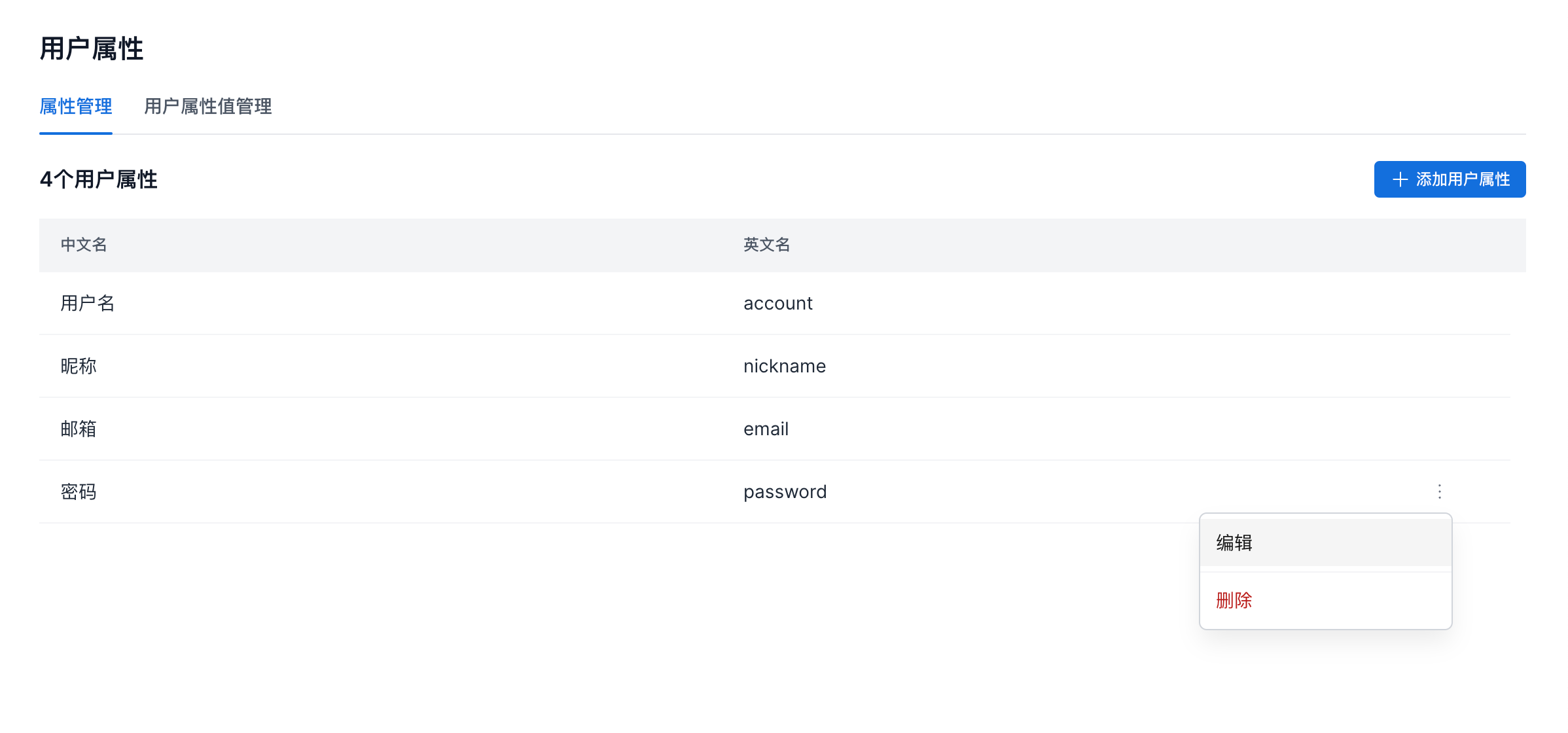 本章节指导您如何管理用户属性,包括新增、修改和删除用户属性以及批量修改用户属性值。