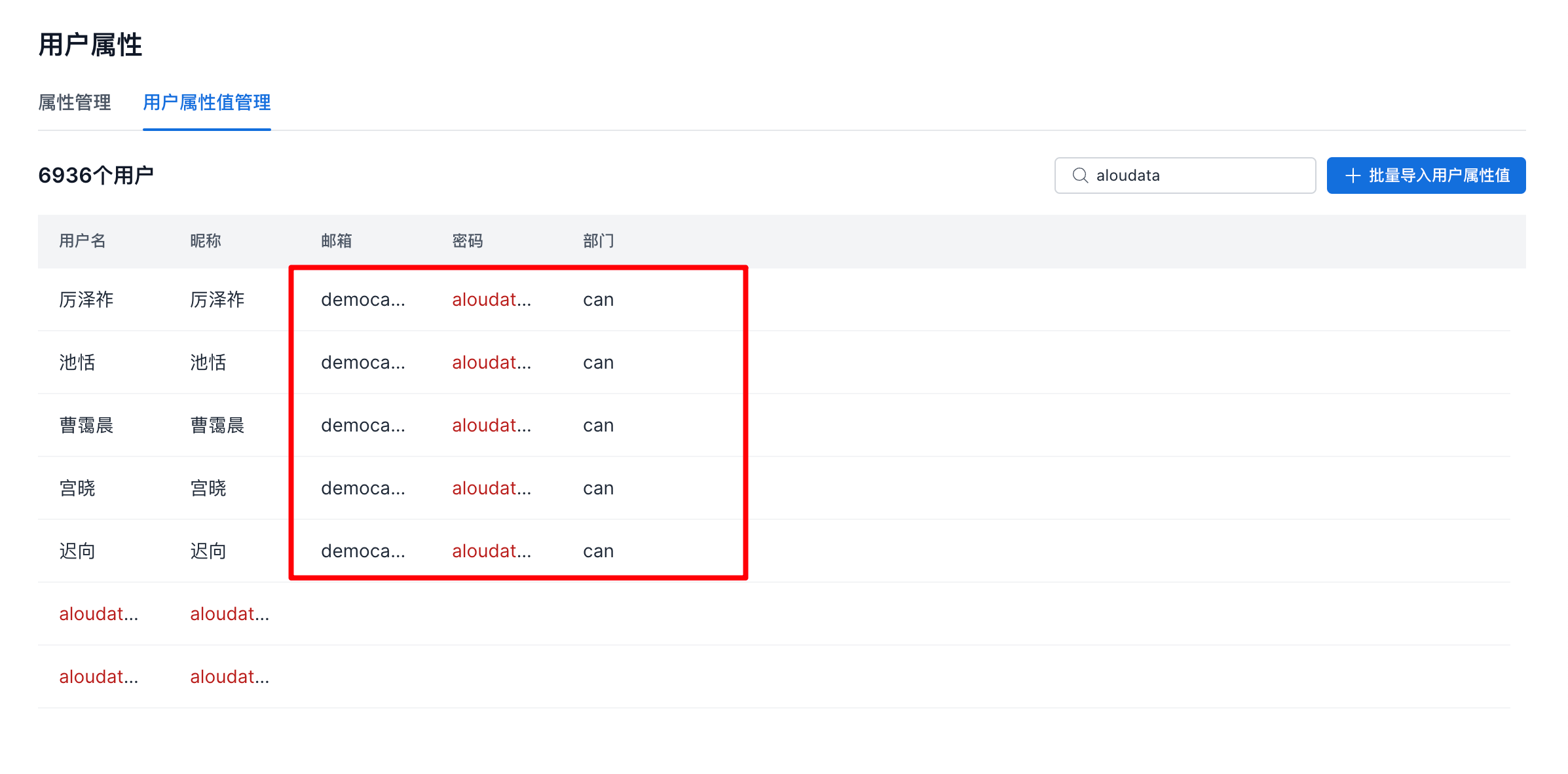- 点击“确定”,完成对指定用户的用户属性更新。如下图