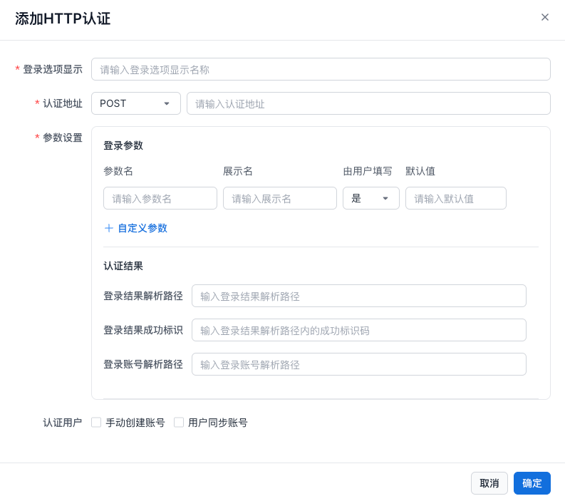 | 认证用户 | 手动账号、同步账号可选择是否启用,取消勾选后该账号将不支持通过 HTTP 认证方式登录 |