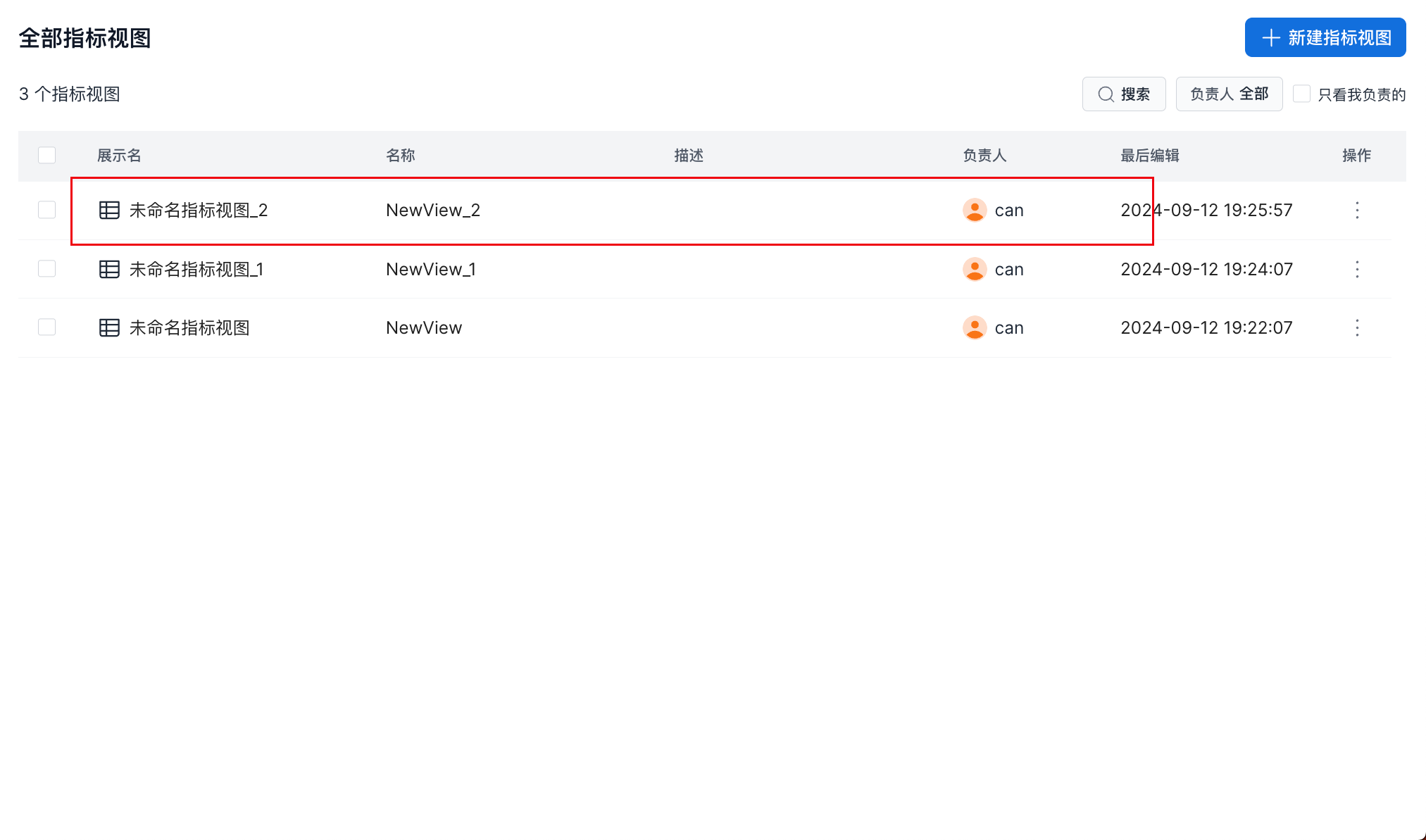 点击复制后会在指标视图列表立即生成一个与原指标视图逻辑相同,名字不同的的指标视图。
