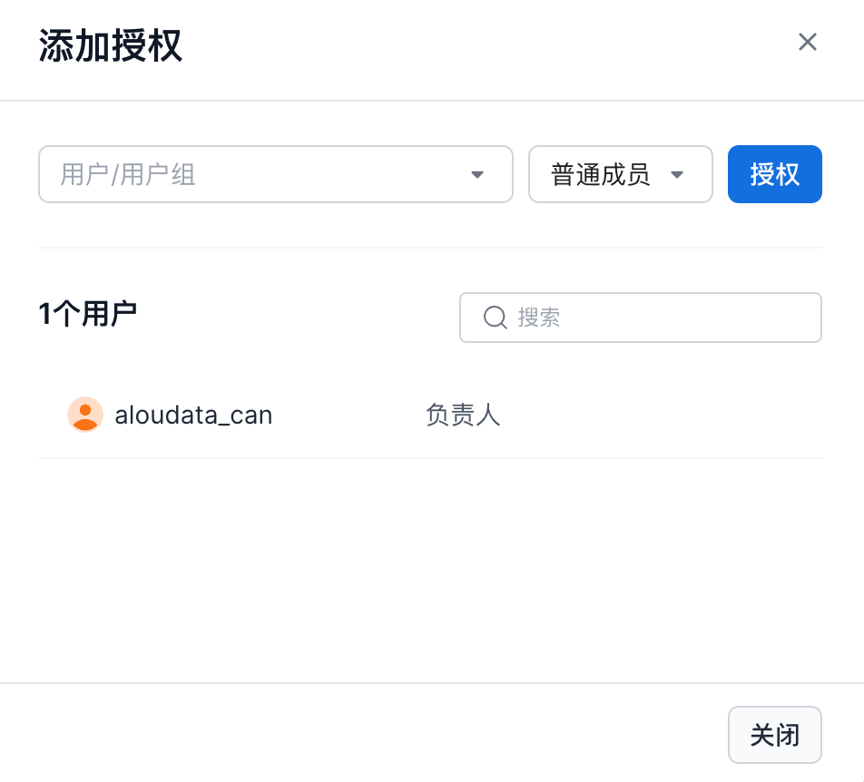 点击授权按钮,在弹出的添加授权窗口中为指定用户/用户组授予权限。 如下图: