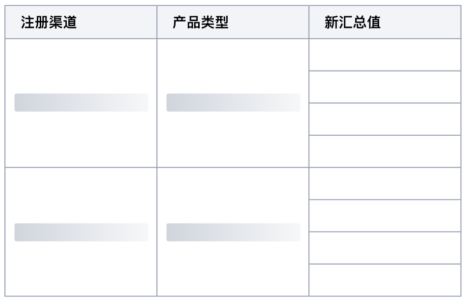 在电子表格中,使用注册渠道和产品类型创建一个层次